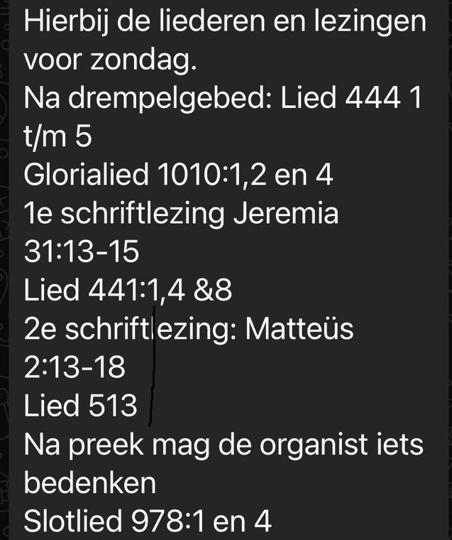 zondag 28 december 2025 om 10.00 uurDorpskerkVoorganger(s): Ds. M. Mol-de Lange