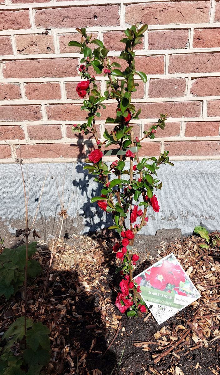 ![]() Die ene struik met rode bloemen is een Japanse sierkwee. De mooie witte bloemen zijn van de sneeuwbal of viburnum, daar staan drie struikjes van. Ook de Weigelia bloeit, met rose bloemetjes aan lange stelen. De opvallende bladeren links zijn van de Phlomis of brandkruid, die bloeit nog niet maar er komen mooie gele lipbloemen aan die in een krans op de steel staan. En de “wilde” geranium of ooievaarsbek bloeit ook in twee kleuren. Verder lopen alle planten goed uit, maar wat is het droog !!! Dat is voor u geen nieuws. Het kost wekelijks tientallen gieters water, sjouwwerk. We (van het werkgroepje) houden dat zo goed mogelijk bij. Eerst met water uit de regentonnen bij de begraafplaats, maar die zijn nu leeg. Helaas maken ongewenste gasten (huisdieren) ook graag gebruik van de border. Als u een bepaald idee heeft of plant wilt bijdragen. Wil ik u vragen dit even vooraf met mij te bespreken. Er zit namelijk een plan achter het ontwerp van deze tuin. We willen zoveel mogelijk naar het oorspronkelijke ontwerp met veel (bio) diversiteit en inheemse planten gaan. Goed voor bijen, vlinders en andere insecten. Bijen en hommels zijn er al te zien! Dan kijken wij samen of het past bij de rest en of het niet gaat woekeren. Namens de werkgroep, Marijke de Boks | ||