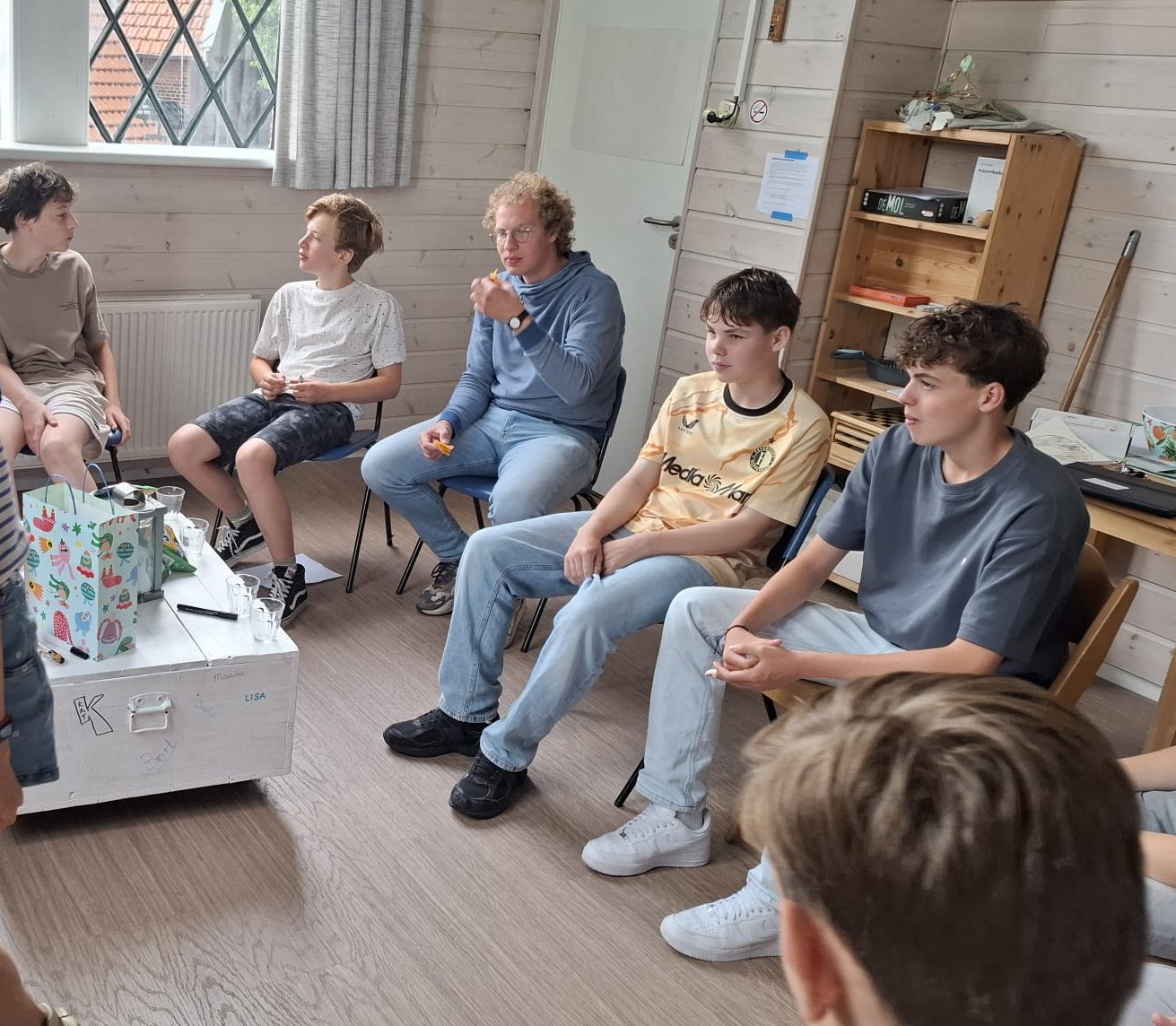 ![]() Annemiek, van de kindernevendienst, sprak de overstappers toe en zij kregen een rugzak uitgereikt, een symbool van alle vragen die ze in dit nieuwe seizoen mogen meenemen, met daarin ook het boek: “25 vragen, 1000 antwoorden". Na een korte introductie door Jaap en Marthijs bleek al snel dat een rugzak vol vragen een goede start is. Tijdens de voorbereidingen kwamen tal van vragen naar boven, waarvan er een aantal op briefjes in een bak lagen. Feline en Lucas trokken er willekeurig twee, die Laurens en Joris in ontvangst namen. Zij gingen op zoek naar antwoorden bij mensen in de kerk, maar niet op alles was meteen een antwoord beschikbaar. Intussen zorgden de oude Providers, die in grote getale (8) waren opgekomen, voor een speelse oversteek: met vraagtekens en voorwerpen, nodig in Provider, trokken zij via de route naar het Arendsnest. Deze viering toonde hoe bij Provider niet alle antwoorden kant en klaar liggen, maar dat we elkaar helpen om vragen te durven stellen en verder te ontdekken. ![]() ![]() | ||